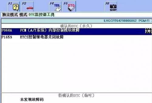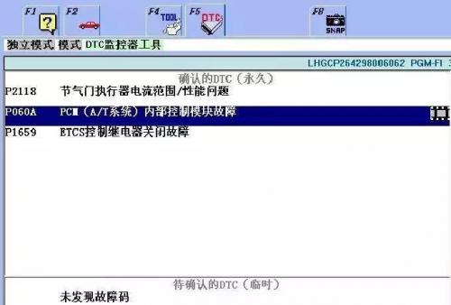 接着,维修人员对ECM重新设定,但故障依旧。再次调取故障代码,发现原有故障代码并未消除,并新增了故障代码P2118(图2)。由于对故障代码P1659的排查陷入僵局,维修人员决定先排查故障代码P060A。