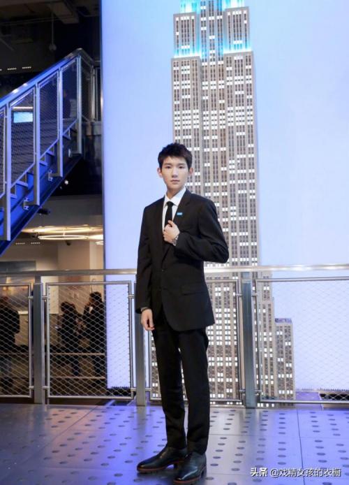王源选择的西装一般都是比较简单的黑色系,但是这种黑色的西服是往往不容易出错的,而且还很显瘦,建议男孩子们初次尝试西装的时候,一定要先买一套黑色的西装,其他颜色的西装可能会有出错的可能性,但黑白蓝色的西装是绝对不会出错的。