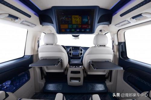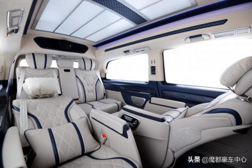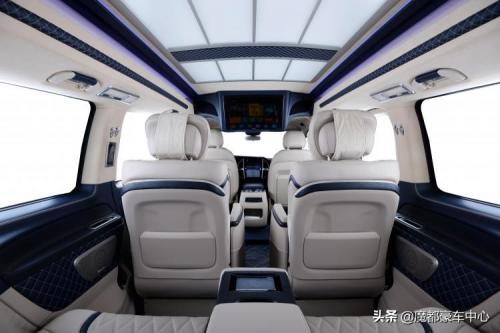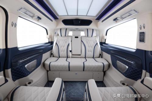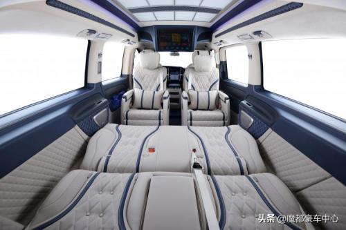 第三排沙发座椅更是一个超大的双人床,顶部的迈巴赫式顶灯逼格满满。