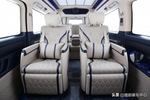 该真皮原料以纤维毛孔细腻而著名。被视为世界顶级汽车品牌真皮用具的不二之选。蓝白的选色搭配更是逼格满满,整车最为豪华的还要属中间的两张头等舱豪华座椅。其配备通风、按摩、加热功能,腿拖以及靠背最大程度能178度平躺在驾驶途中能够给予家人最大程度的乘坐体验。