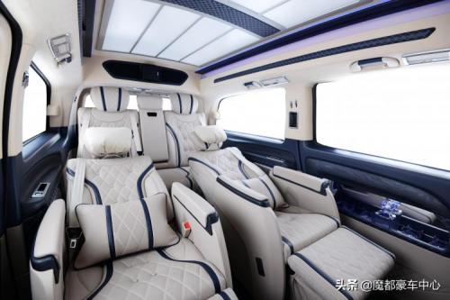 今天为大家介绍的是一款基于奔驰威霆升级的奔驰威霆高顶半隔断普尔曼系列豪华MPV。这款车是在原有的基础上增加了一个高顶使得其内部空间更加宽裕,车身尺寸更是在原有的基础上增加到了2100的高度。其内在更是奢华到极致,顶级头层小牛皮源用德国阿尔卑斯山脉中部区域的1.5-2岁公牛的头层小牛皮,纯手工缝制;