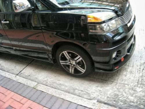 这个角度看有点别扭,前包围太厚重,轮子太小而且缩进去了,难怪香港那么多丰田保姆车都是经过改装的,因为这实在不好看而且太平庸了。