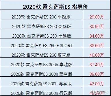 2020款雷克萨斯ES 260卓越版,厂商指导价:34.60万元。