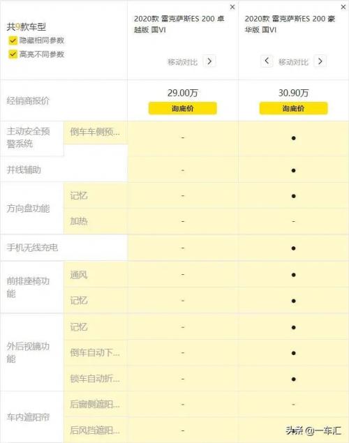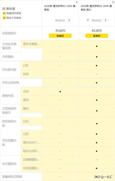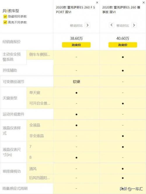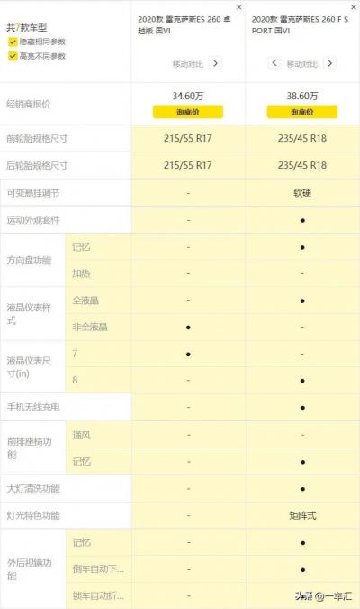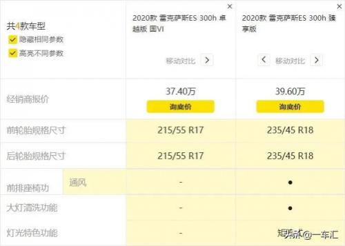 下面针对2020款雷克萨斯ES全系不同版本车型配置差异,进行详细解读。