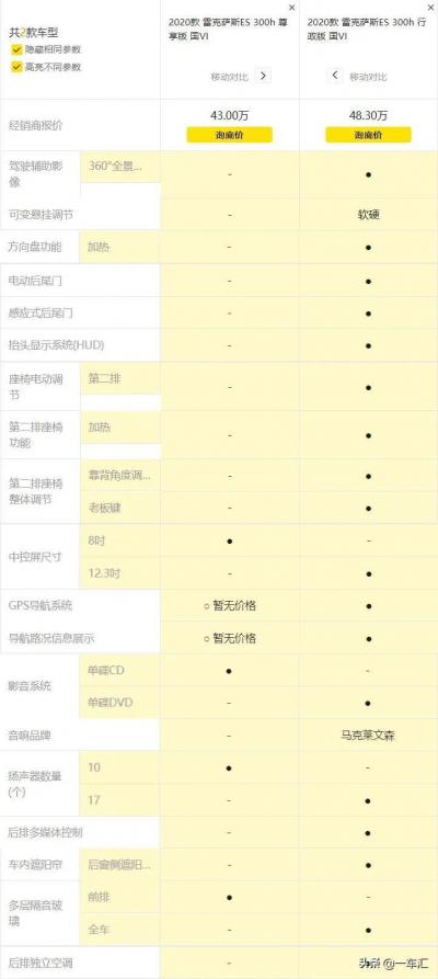 2020款雷克萨斯ES 300h行政版,厂商指导价:48.30万元。