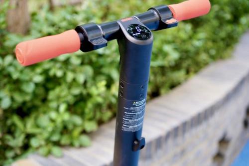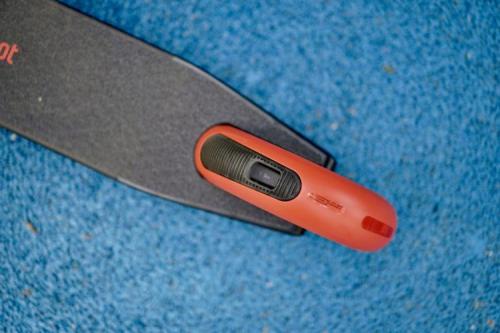 从实拍图片可以看出,九号电动滑板车ES1L整车外观采用典雅黑和活力橙撞色设计,将稳重与活力交织与一体,看起来更青春活力。握把和挡泥板采用大面积橙色,相比之前的黑色也更动感。