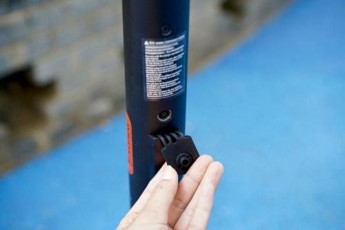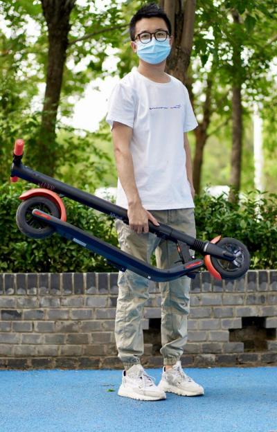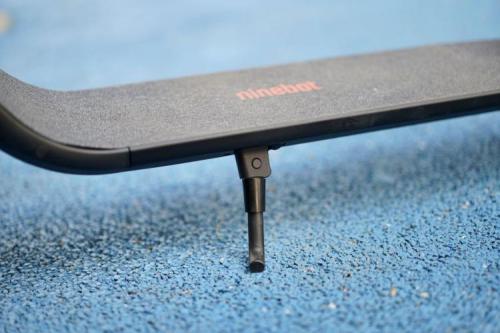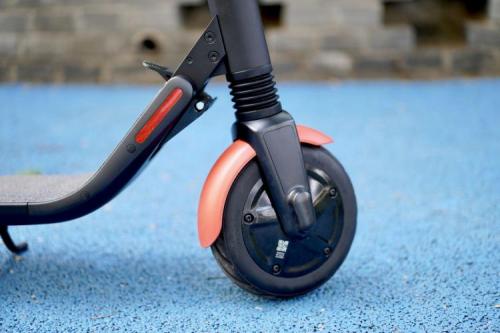 8英寸的轮胎,过一些颠簸路面还是比较明显的,为了弱化路面传递的颠簸力道,九号电动滑板车ES1L还配备了前置减震弹簧,减震效果还是不错的。对于小区内的减速带,缓坡,一般情况下都可以通行。