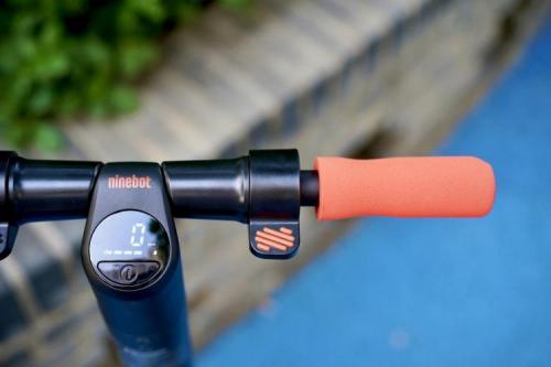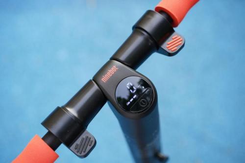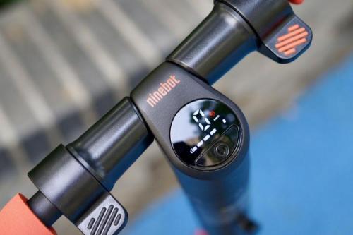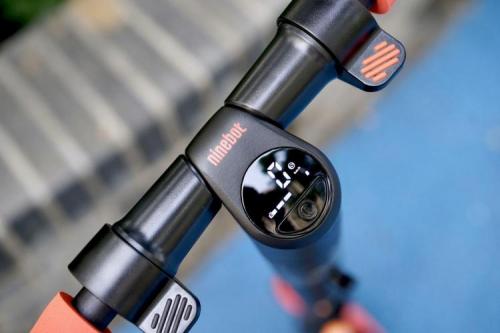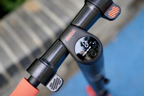 车头部位中间是九号电动滑板车ES家族简约时尚的LED数码仪表,单按开关,仪表亮起,可以看到车辆的信息,包括实时速度、剩余电量和行车模式,显示非常清晰。因为是更纯粹的入门款,九号电动滑板车ES1L并没有接入智能APP,所有的车辆信息通过数字仪表就能掌握。