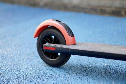 轮胎配备的是九号历时两年开发的8英寸内支撑镂空防爆轮胎,既有实心胎的维护省心,又有充气胎的舒适,可以轻松越过减速带,驶过砂石地,不容易爆胎、免维护、高减震,三种优势于一体,骑行体验更好。内支撑镂空防爆轮胎大家平时可以放心造,不怕扎不怕割,不会出现气胎的问题。