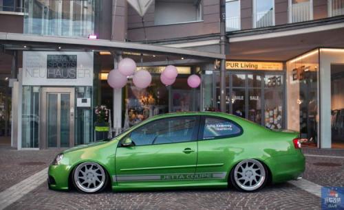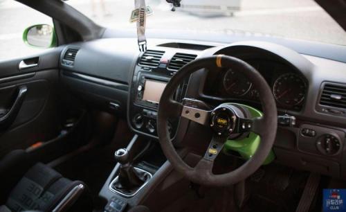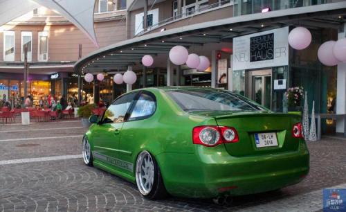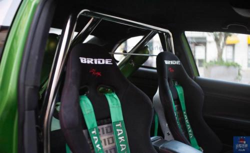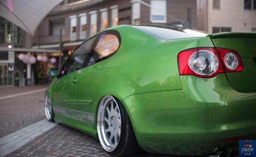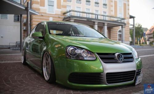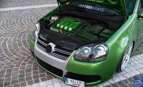 这是一辆充满“生气”的大众速腾,全车外观部分,采用定制绿色车漆,R32前保险杠,R32头灯,搭配18寸Rotiform OZT轮毂,性能动力部分,全车搭载1.9 TDI柴油引擎,换装定制喷油器,碳纤维绿色引擎包裹,Airlift气动套件,Airlift V2气动管理系统,定制排气系统,内饰部分,则采用Bride Low Max座椅,定制防滚架,Takata安全带和OMP Corsica方向盘。