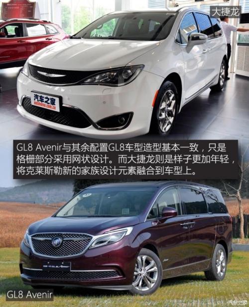 单聊两款车的外观设计,别克GL8 Avenir与其余低配置GL8车型差异并不大,只是在一些设计细节元素上更有品位,整体造型还是想塑造宜家宜商的感觉。而大捷龙则是颠覆了老款车型的设计理念,整体造型更加前卫激进,把克莱斯勒最新产品设计理念都融入车型中,更像是为了家用市场做了更多妥协。所以单论外观来说,两者想告诉消费者的是两种定义,只论设计感,我认为大捷龙更好看。