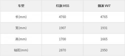 从尺寸来看,红旗HS5和魏派VV7非常接近。可看作是同级别的对手车型。