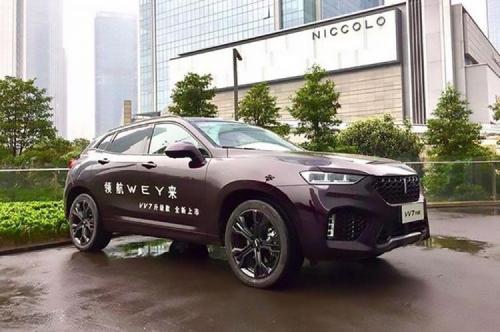 VV7从侧面来看,非常具有未来感。相比HS5车窗更窄、车尾线条收拢的幅度更大,加之车身长度比HS5还长了5毫米,而高度却低了3.5厘米。营造出一种更低趴的视觉效果。