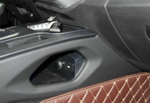 挡把区域简洁明了,驾驶模式切换用了一个手感非常不错的旋钮设计。车辆启动按键也放在了挡把左前方。