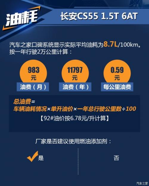 就在今年(2017年)9月份长安汽车推出了一款全新SUV——长安CS55,新车定位紧凑型SUV。车辆在上市后保持了较高的关注度,因此在这段日子中我们对该车也做了较为全面的介绍,感兴趣的朋友可以从车系页中寻找自己感兴趣的内容。今天我为大家带来的长安CS55的养车成本解析,一起来看看我们的养车成本又是如何吧。