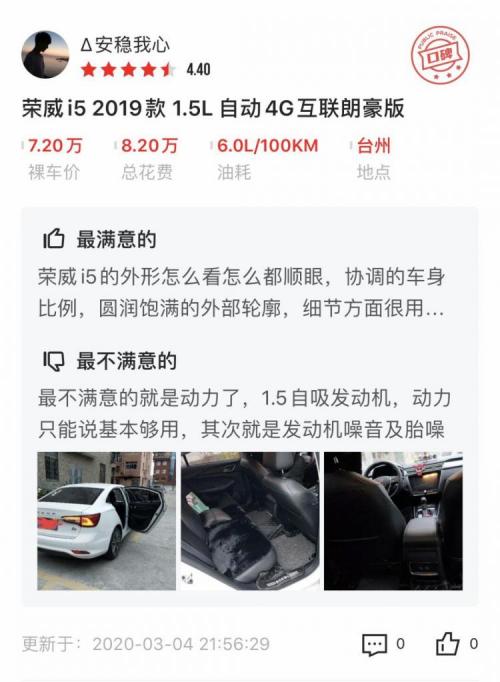稳重大气的外观、宽敞的空间再加上价格这一重磅杀手锏,荣威i5对于家用而言非常合适,竞争力极强。同时,1.5L以及1.5T两种动力组合也能够满足不同消费者的购买需求。不过i5也并非没有缺点,用户口碑并不算出色,比如发动机噪音大、低速共振等一直都困扰着不少车主。未来,如果荣威能在提升产品质量方面再下功夫,相信其用户口碑以及销量都会有更好的表现。