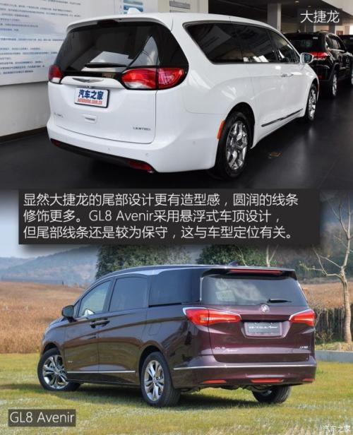单聊两款车的外观设计,别克GL8 Avenir与其余低配置GL8车型差异并不大,只是在一些设计细节元素上更有品位,整体造型还是想塑造宜家宜商的感觉。而大捷龙则是颠覆了老款车型的设计理念,整体造型更加前卫激进,把克莱斯勒最新产品设计理念都融入车型中,更像是为了家用市场做了更多妥协。所以单论外观来说,两者想告诉消费者的是两种定义,只论设计感,我认为大捷龙更好看。