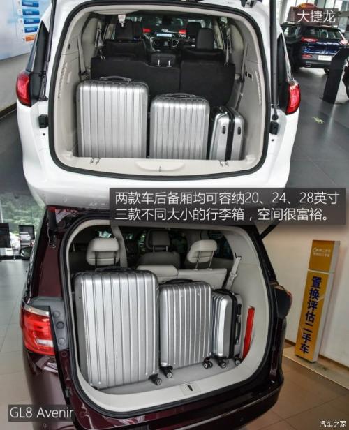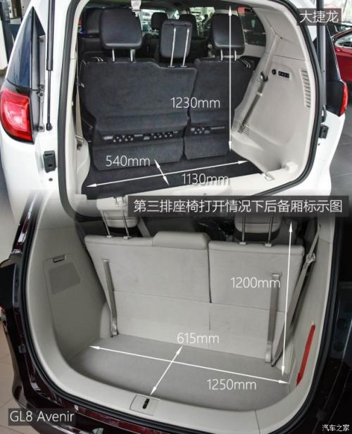最后看第三排,其实前面对于GL8 Avenir第三排乘客的照顾我们基本也可以猜出个结果,从上图的储物表现来看,大捷龙比GL8 Avenir强多了。储物空间对比之后,我们最后再来看看两款车的后备厢空间表现。