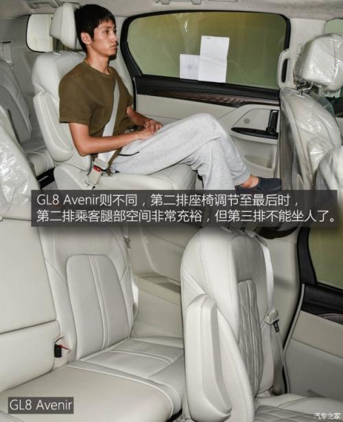 GL8 Avenir第二排座椅前后可调节幅度相比大捷龙更高,尤其是将第二排座椅调节至最靠后时,第三排座椅已经完全无法乘坐,旨在满足第二排乘客的乘坐空间,此时打开腿托,乘客基本可以完全呈放躺姿态,得到更大的放松,这也是突出GL8 Avenir对于第二排乘客的照顾。