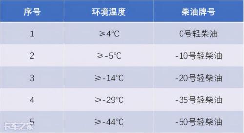 我国地域辽阔,冬季南北气温差异大,为适应不同环境气温需求,车用柴油有多种牌号,在环境温度≥4℃时,只需使用0#柴油,而当环境温度一旦低于4℃时,再使用0#柴油则面临燃油结蜡的风险,所以就需要使用更低牌号的柴油。