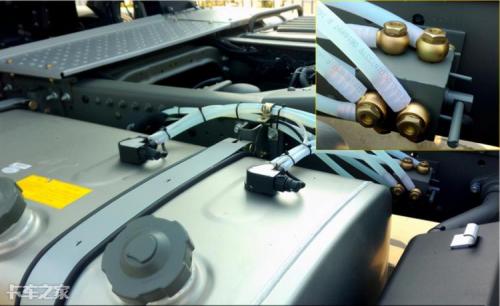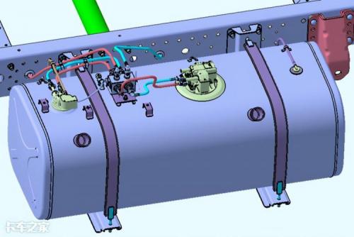 第三种燃油管路中带电加热的双腔油箱则较为少见,其结构特点就是在供油管路中增加了电加热丝,保证燃油在供油过程中不会受气温影响冻结,同时驾驶室内会增加电加热控制开关,不过这种双腔油箱较为少见,主要是应对极寒区域的一种解决方案。
