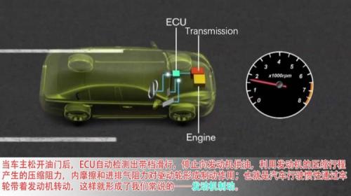 首先,我们知道汽车在减速时,轮胎转速比离合器连接发动机一端的输出轴转速要快,因此,我们在踩刹车时,最好不要踩离合器,利用发动机减速更有效率、更安全。了解混动/纯电动汽车的朋友都知道,混动/纯电动汽车有能量回收机制,在汽车“急刹车”时,行车电脑ECU会接收到“急刹车”指令,然后电机介入,协助刹车又能反向给电池充电,一举两得,能量回收原理就是如此简单。
