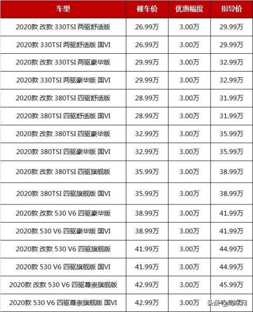 大众途昂这两年一直都是最受欢迎的中大型SUV,今年截至8月底累计销量达到46085辆,可谓遥遥领先。此前由于合资中大型SUV少,大众途昂在这个价位区间几乎没有对手。今年随着多款美系中大型SUV的推出,对大众途昂销量也造成了一定的影响。目前大众途昂的终端优惠并不算特别大,以重庆地区为例,优惠幅度在3万元左右,新车起售价26.99万起。当然,部分地区还有国五车型清仓,顶配车型优惠幅度甚至超过10万元,毕竟国五车型上牌的最后截止时间也所剩无几了。以下是大众途昂在重庆地区的终端参考售价:
