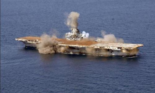究竟需要对航母进行何等程度的打击才能使之沉没呢?美国在1963年向一艘航母投掷了核弹后,才终于击沉了这艘航母。