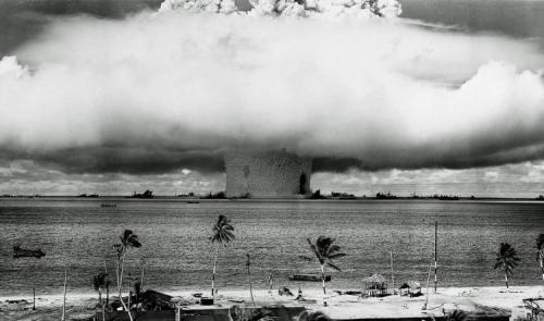 比基尼环礁核试验,核弹周围便是各类军舰