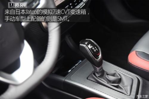 尾部上下是双色设计,到处都是立体、多线条的元素,风格和总体设计保持了统一,但我觉得实在是有些繁杂了,看上去欠缺一些美感。厂家将U5 SUV定义为为年轻人打造的SUV,外观设计上看,特立独行的风格也许确实能迎合一些年轻人的审美。