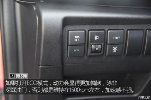 U5 SUV采用的是来自东风的A16系列1.6L自然吸气发动机,最大功率124马力(91千瓦)/6000rpm,最大扭矩153牛·米/4200-4400rpm,与之搭配的是5挡手动变速箱和CVT无级变速箱。我们此次试驾的是CVT车型。