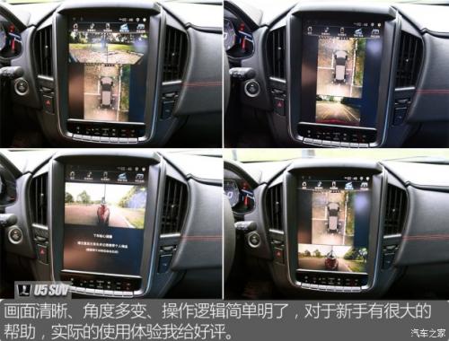 打开AR功能,屏幕上基本可以模拟出车外人的视角,帮助驾驶者停车、挪库,呈现出来的画面比较清晰,畸变控制得也很好,可以说是市面上体验很好的全景影像系统之一,语音识别的体验也不错,U5 SUV的多媒体系统无论功能性、易用性都很出色。