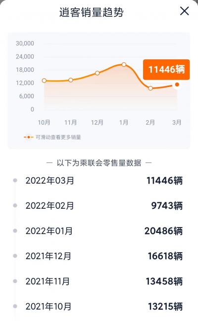 据乘联会数据显示,日产逍客3月销量11446辆,位于紧凑型SUV排行榜第9位,一季度累计销量为41675台,同比增长3%。