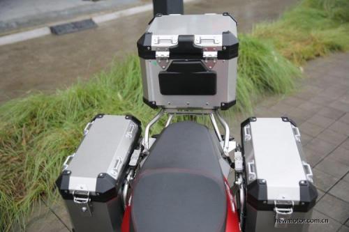 铝合金三箱为选配,尾箱可放置一顶全盔。为了后乘客舒适性考虑,尾箱带有软性靠背。