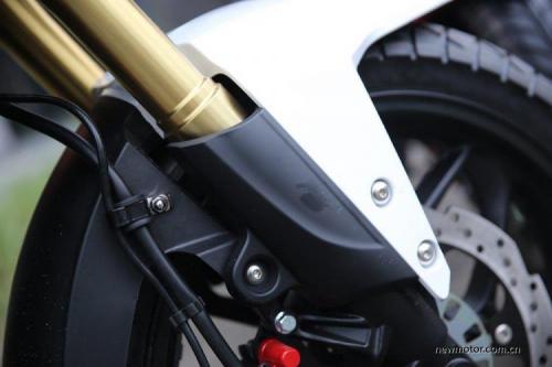 原厂自带的前避震护板很实用,可预防避震意外损伤,阻挡泥水侵蚀,延长避震寿命。