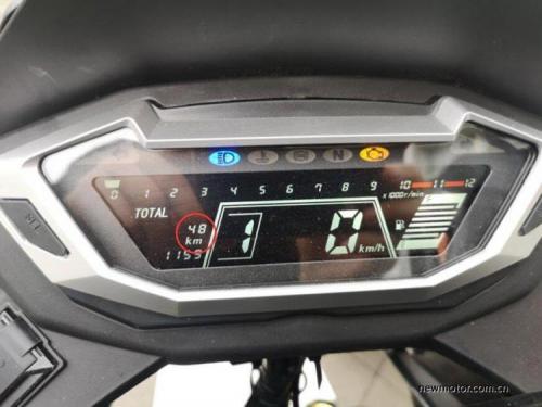 全液晶屏,档显、里程、转速等常用的车况信息一一具备,且显示效果好。仪表旁边还加有摩旅必备的USB充电接口。