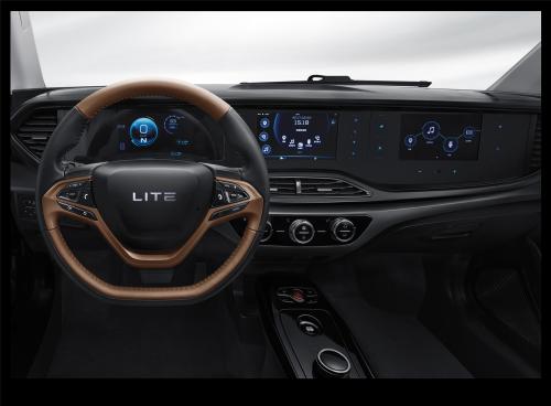 除了外观设计方面的独特以外,LITE的内饰设计同样彰显出与众不同和超高的水准。LITE打破传统汽车中控台的设计套路,代之以业内首创的一体化高清三联屏设计。触屏式操控的中控屏,触感细腻,操作流畅,通过操控车内一体化三联屏,可以实现上网、聊天、娱乐等诸多智能互联功能。LITE还是世界上首款装配车外前后彩色显示屏的汽车。通过车外前后显示屏,LITE可以让用户发布趣味问候话语、表情等,通过它,车主可以向周围那些忙于赶路的人打招呼。