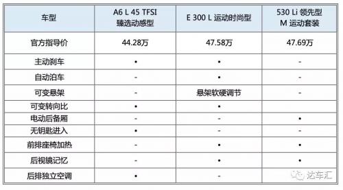 配置方面,与奔驰E级和宝马5系相比,全新一代奥迪A6L也能Hold用户。首先在价格方面,同是中配车型,全新一代奥迪A6L售价44.28万元,比奔驰E级和宝马5系要低3万多元。