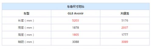 在车身尺寸上,两个产品各有长处,长度与高度,别克GL8 Avenir占优。宽度方面,大捷龙更好,且有着绝对优势。两款车的轴距相比,大捷龙仅比GL8 Avenir轴距大1mm,基本可以忽略不计。所以在车身尺寸方面,两款车并没有绝对败者,毕竟这些数据上的差异,体现在空间表现上才是最有价值的。