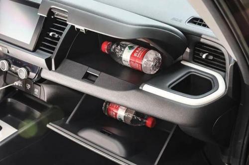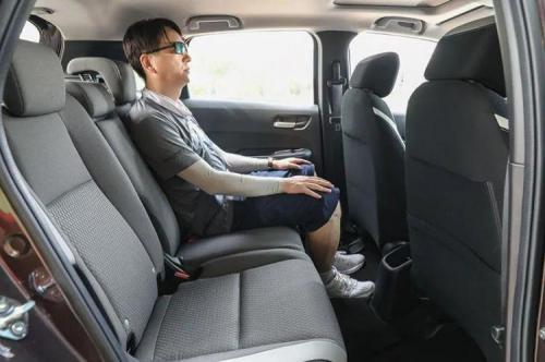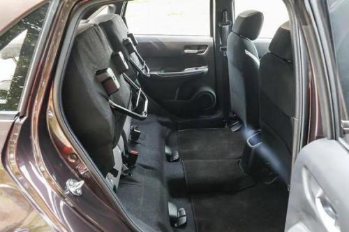 飞度的空间设计从来没有让人失望过,比同级别,依然是无出其右者。先说储物格,每个座位触手可及到处都有,而且各类格槽功用齐全。仪表台两侧置于出风口处的杯架尤其讨人喜欢,炎热夏季把饮料放在这里很快就能喝上冷饮。前后排的头部空间正好是不感到压抑的水准,而调整好前座位置后,后排腿部仍有两拳左右的空间。