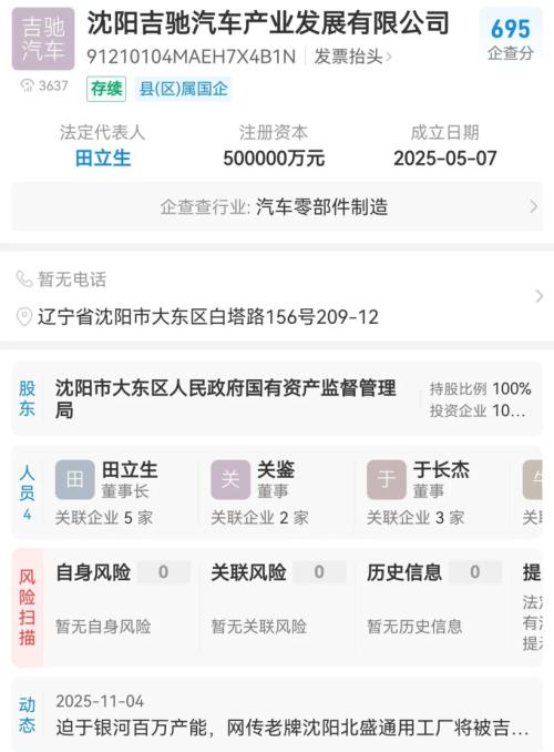 就拿目前沈阳的北盛工厂来说,吉利除了让其零部件体系的地通工业控股集团落地沈阳辉山经开区外,尚未在当地成立明显和乘用车制造相关的商业组织。根据行业分析认为,目前基地的初期改造资金为地方国资委出资,不排除未来吉利和当地政府共享产业收益和分摊市场风险的可能。