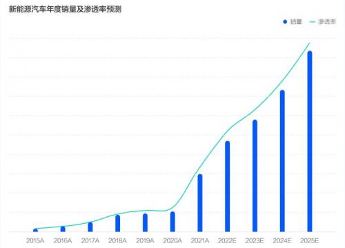 购置税减免,新能源车下乡,“双积分”、“双碳”目标明确等政策利好不断,促进新能源汽车规模不断增长;并且,行业真正实现消费端崛起,逐步由政策引导转向消费驱动。巨量算数基于历史销量趋势推算,预计2025年新能源汽车渗透率将达到45%左右。