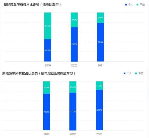 个人用户是未来市场的主要增量群体,新能源车市场中,不同类别的细分市场,个人用户占比均有较大幅度增长。