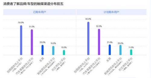 从用户的信息获取渠道来看,新能源汽车消费者的决策日渐依赖短视频线上平台。短视频类线上平台已为其接收信息、了解汽车品牌/车型等专业知识的主要渠道。